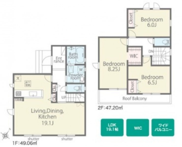 | 設備・条件 | システムキッチン、カウンターキッチン、洗浄便座、浴室乾燥機、追い焚き、複層ガラス、ウォークインクローゼット、駐車場2台分、トイレ2箇所 | ||
